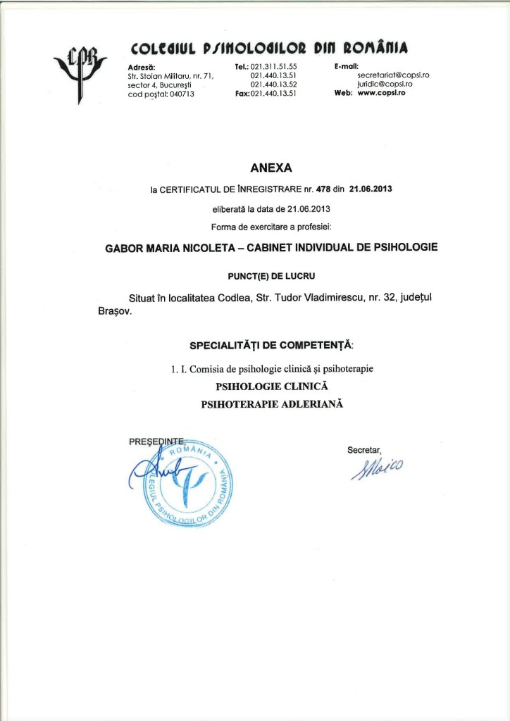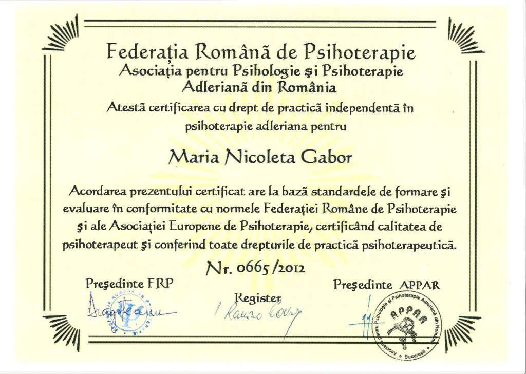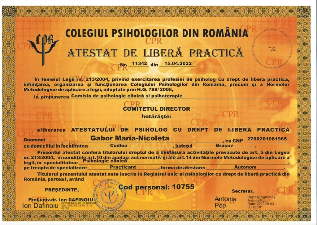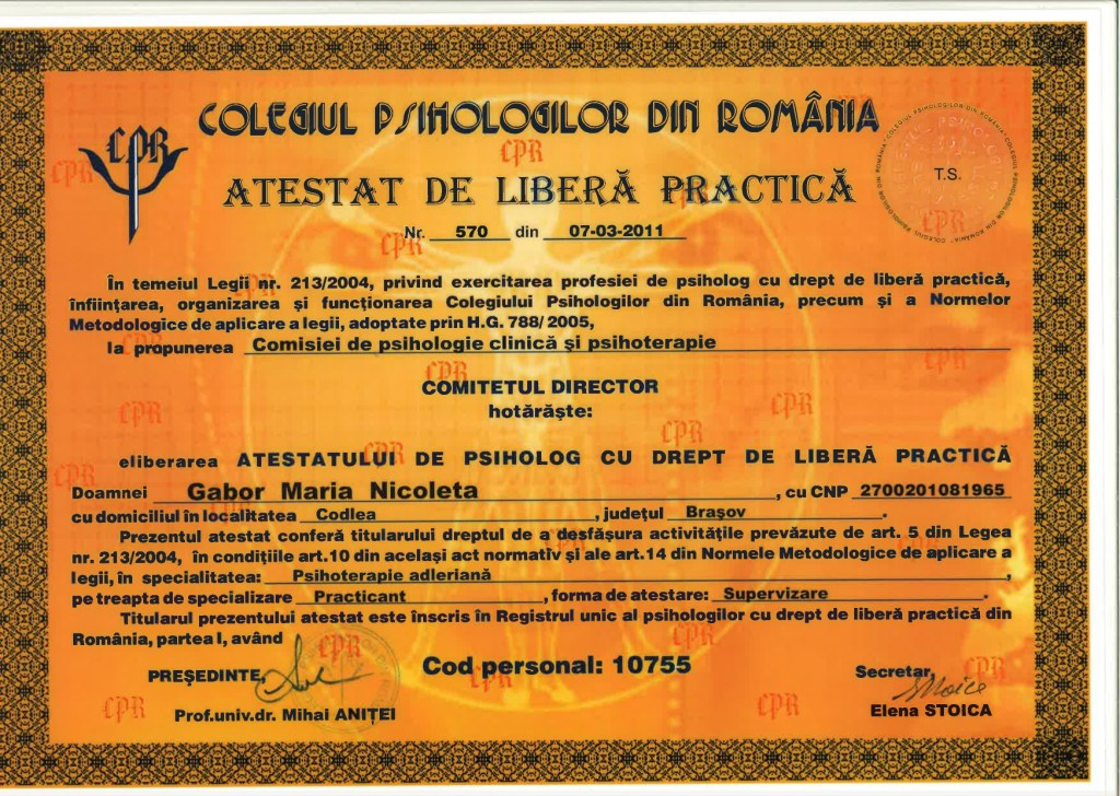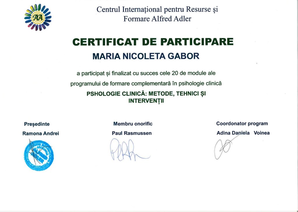 Certificat Psihologie Clinica