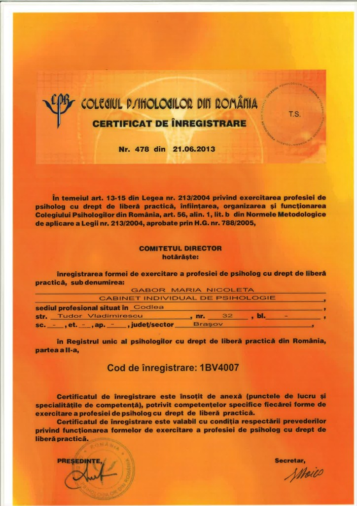Certificat de inregistrare